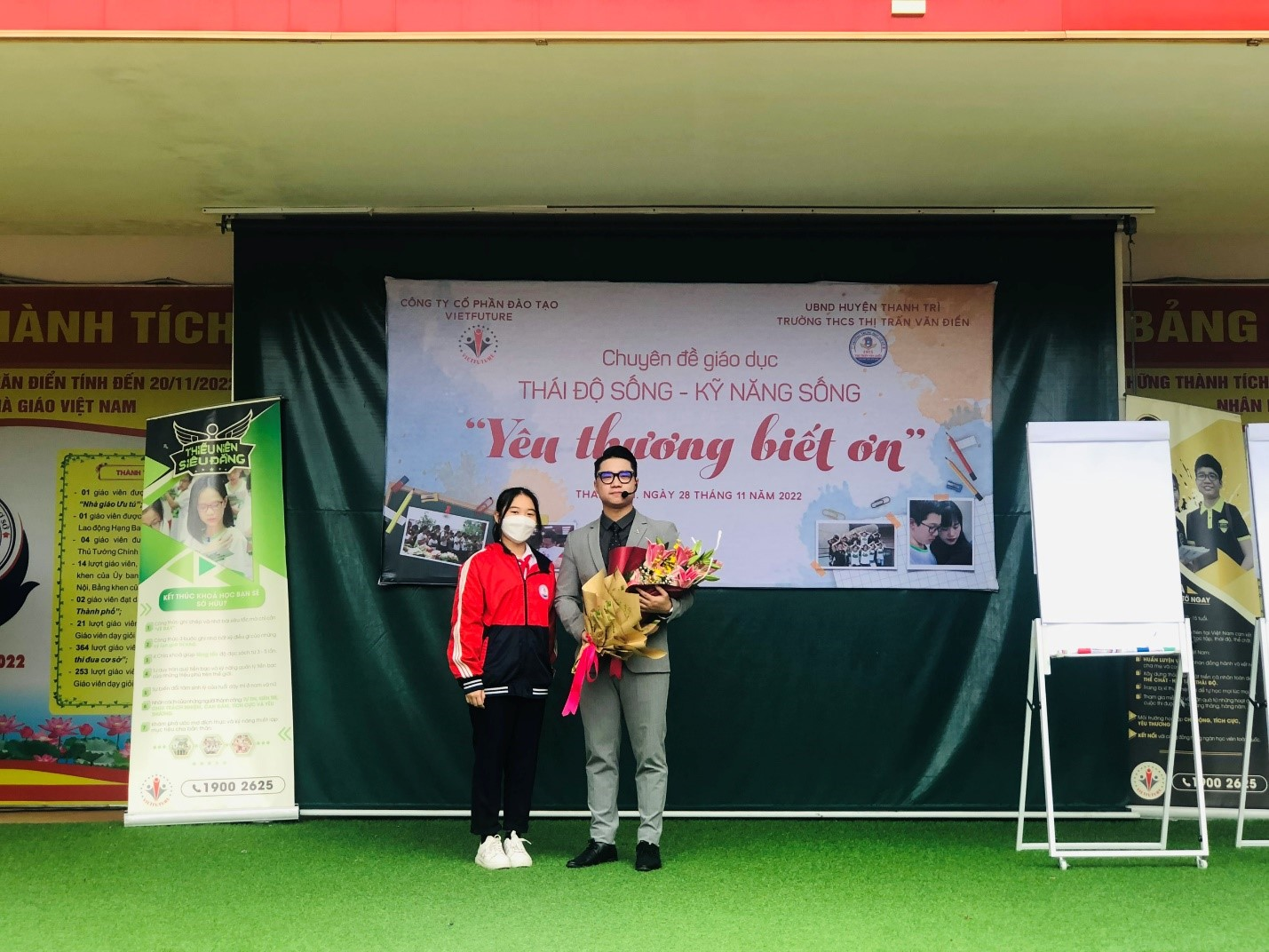 Bằng chất giọng ấm áp và lối dẫn chuyện truyền cảm hứng, bài chia sẻ của Diễn giả Vũ Huy Hoàng- Công ty Viet future đã chạm vào trái tim của của cô và trò trong buổi sáng hôm nay. Thầy đã giúp các em học sinh thấu hiểu thêm về sự yêu thương và lòng biết ơn trong cuộc sống. Đó chính là đạo lí làm người mà ông cha ta đã truyền lại qua bao đời, bao thế hệ. Tinh thần hiếu đạo, uống nước nhớ nguồn cùng những giá trị truyền thống tốt đẹp chính là kết tinh của tinh thần dân tộc, là mạch nguồn của cuộc sống và cũng chính là yếu tố để góp phần quyết định nên sự suy thịnh của một đất nước.